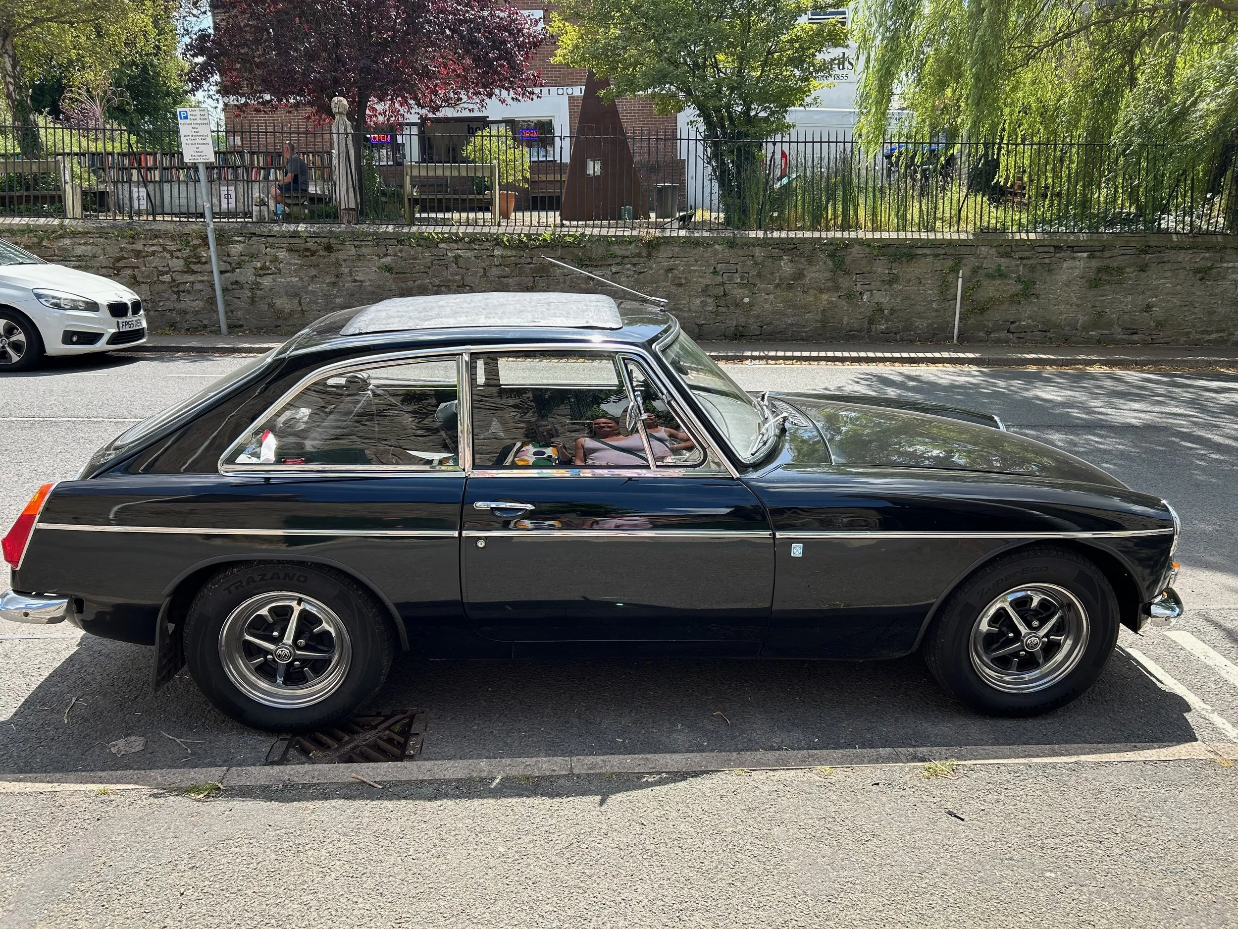 black two-door retro car also outside Cinema Bookshop