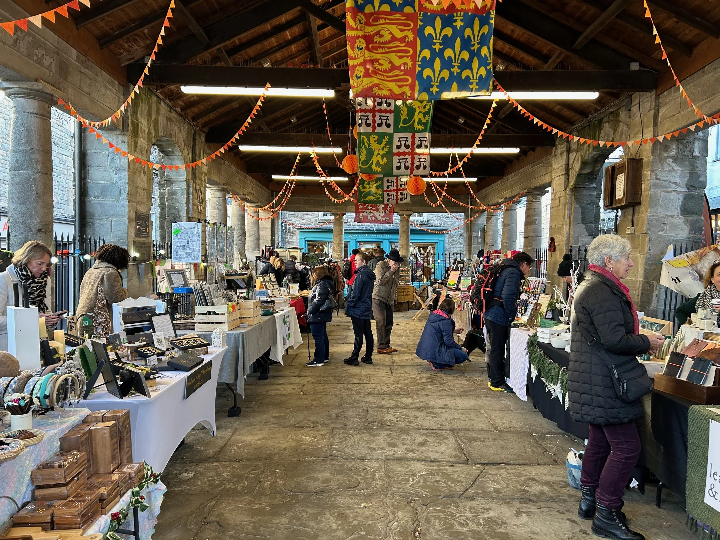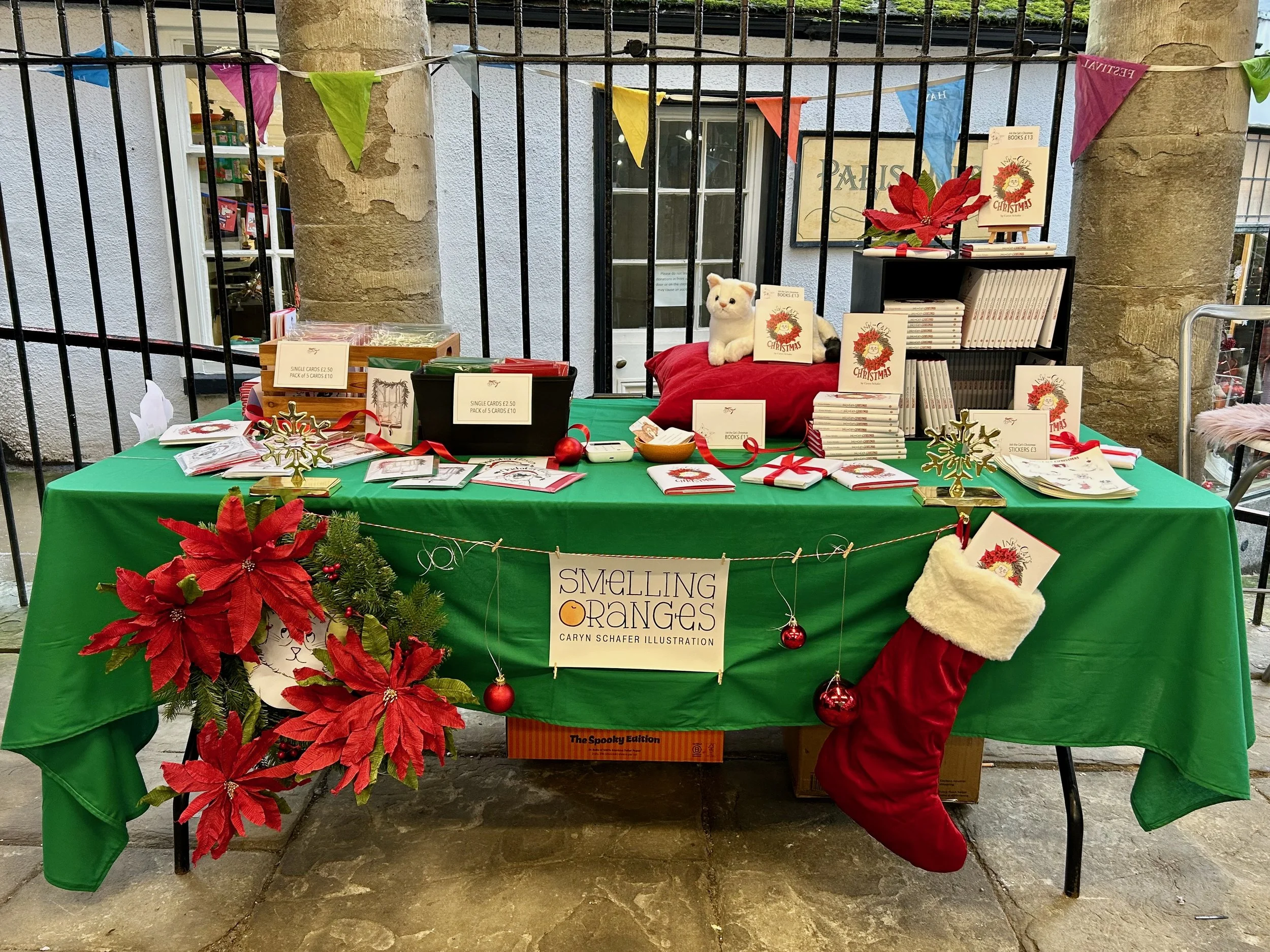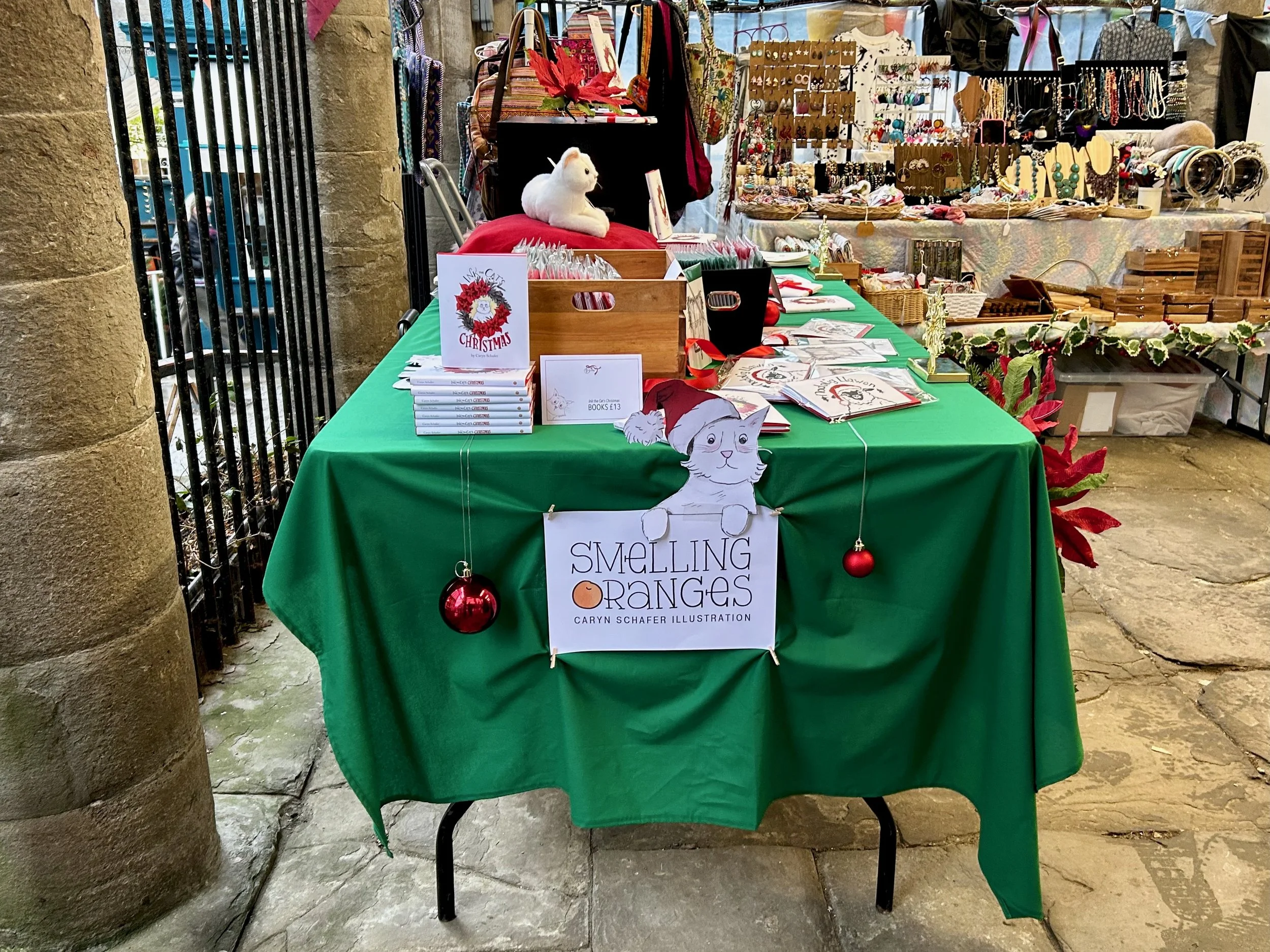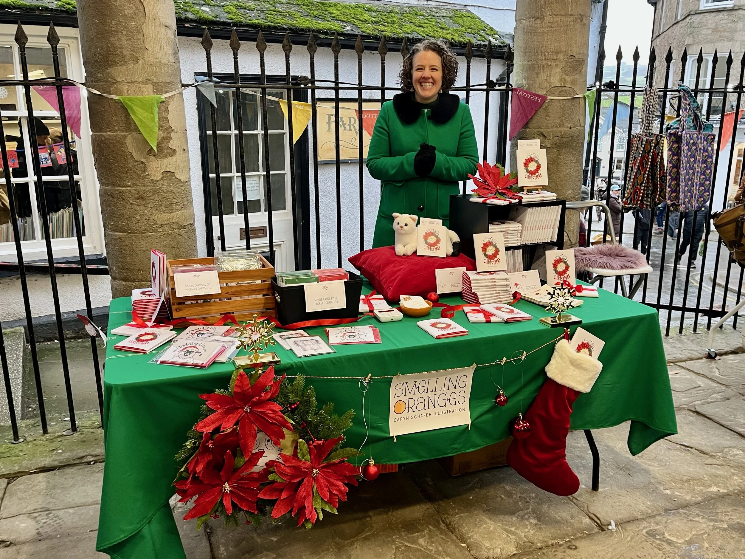 Well, mark this off my bucket list of life goals. Considering Hay has been a market town for over 700 years, I figured I should at least give selling at one a try while I live here! It’s my first market table and I’m quite pleased (or chuffed as the Brits say) with how it turned out. This was a Saturday market during the Hay Festival Winter Weekend. The weather was not particularly great, quite chilly and bouts of heavy rain; but it was still a lovely, festive day with lots of people wandering about.