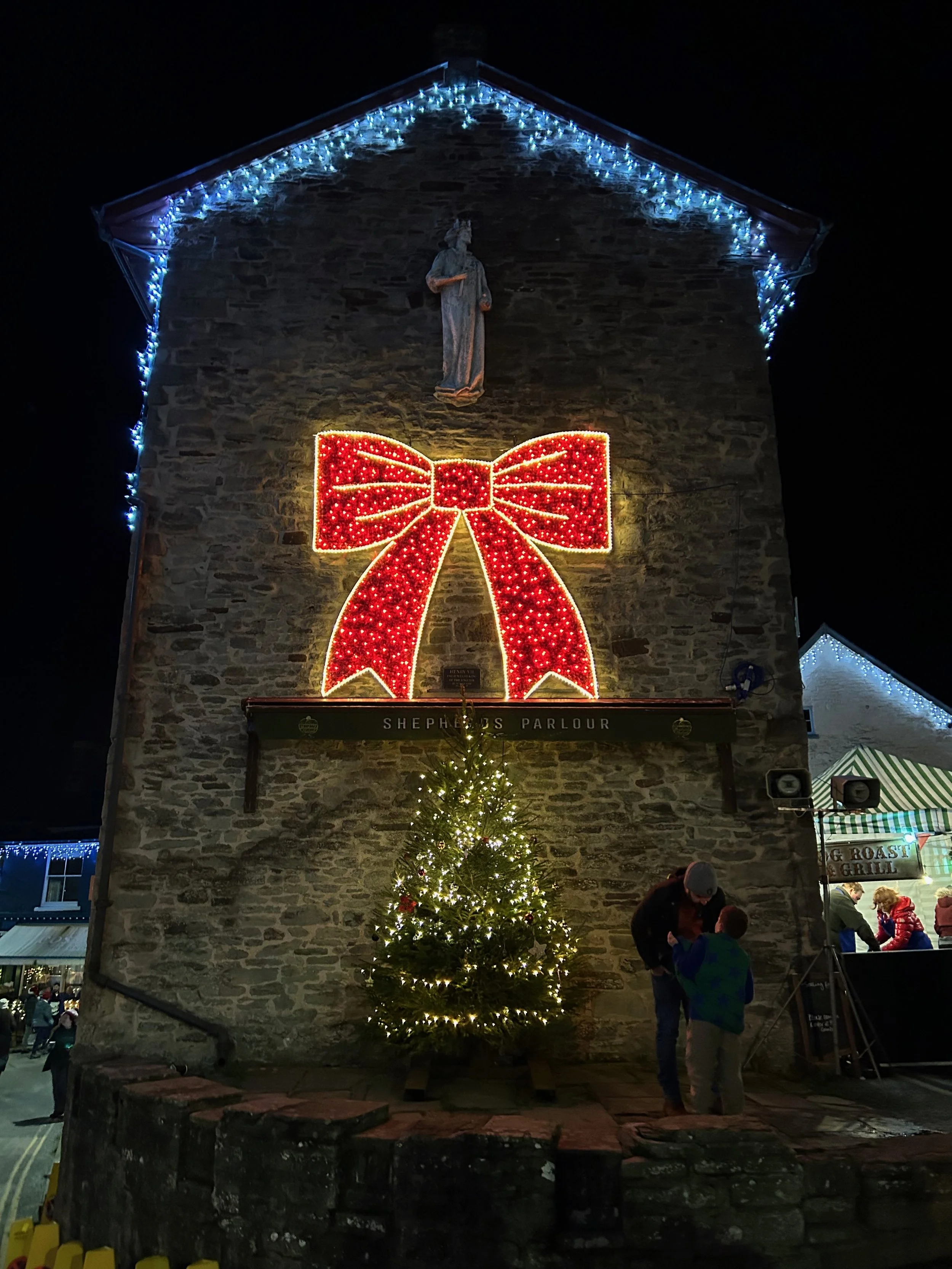 The night before the market was the Christmas lighting for Hay. It is a bustling time with the most crowded center square. Musical groups perform, booths of food, a few artisans, and local school fundraisers surround, and a celebrity guest speaks and turns the lights on for the whole town. Including this small tree and bow. It’s quite Stars Hollow for my fellow Gilmore Girls fans.