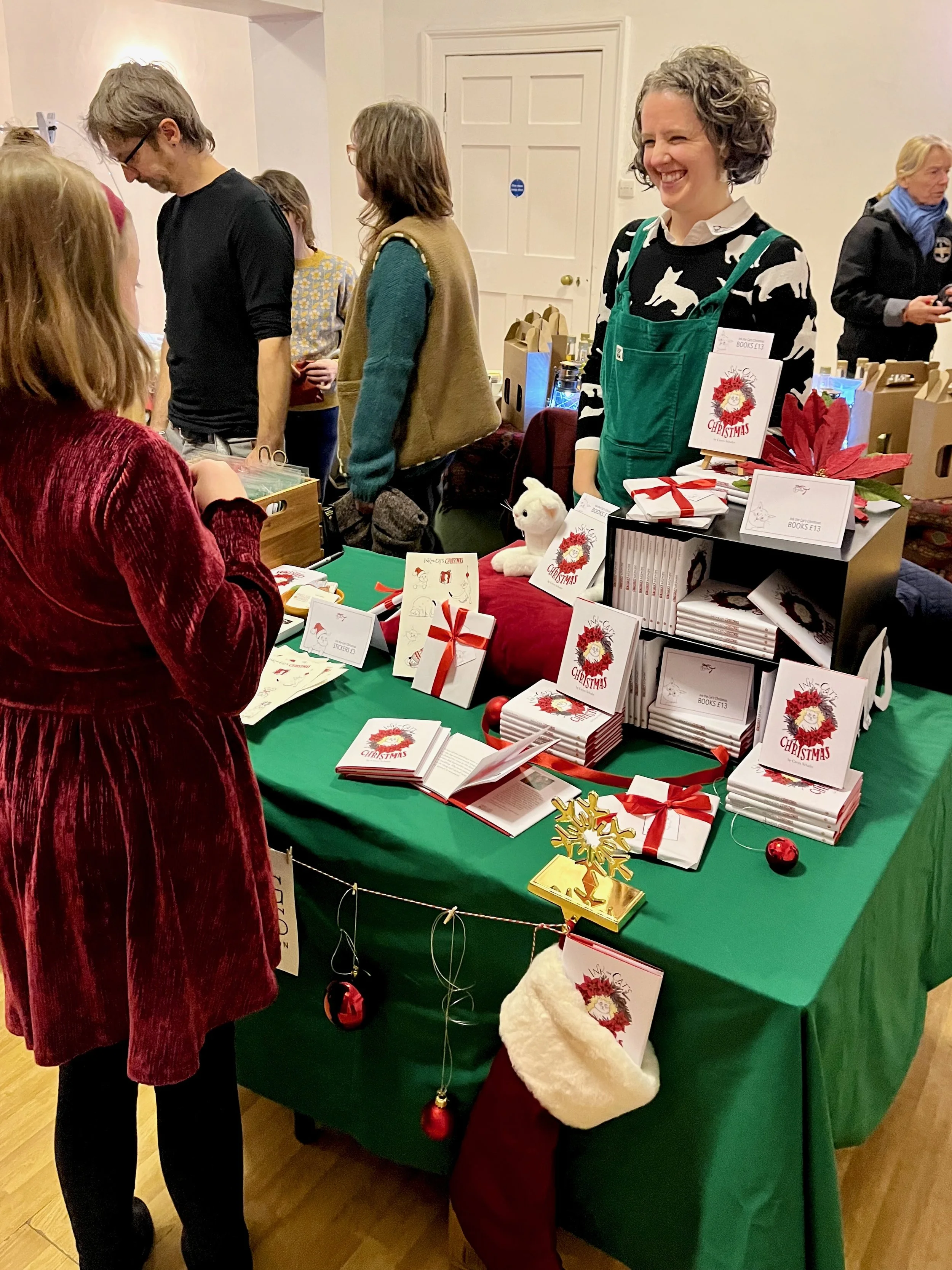 The atmosphere was a bit less cheery in the hall, but I was very grateful to be indoors and quite warm. A bit too warm perhaps, but a good contrast to the Saturday market. The table was wonky, so it wouldn’t hold my Christmas wreath; but I’m still mostly happy with how the table turned out. I had significantly less cards to sell, but the evening was still quite successful and enjoyable! It’s good to know I can handle markets now and then. 💚