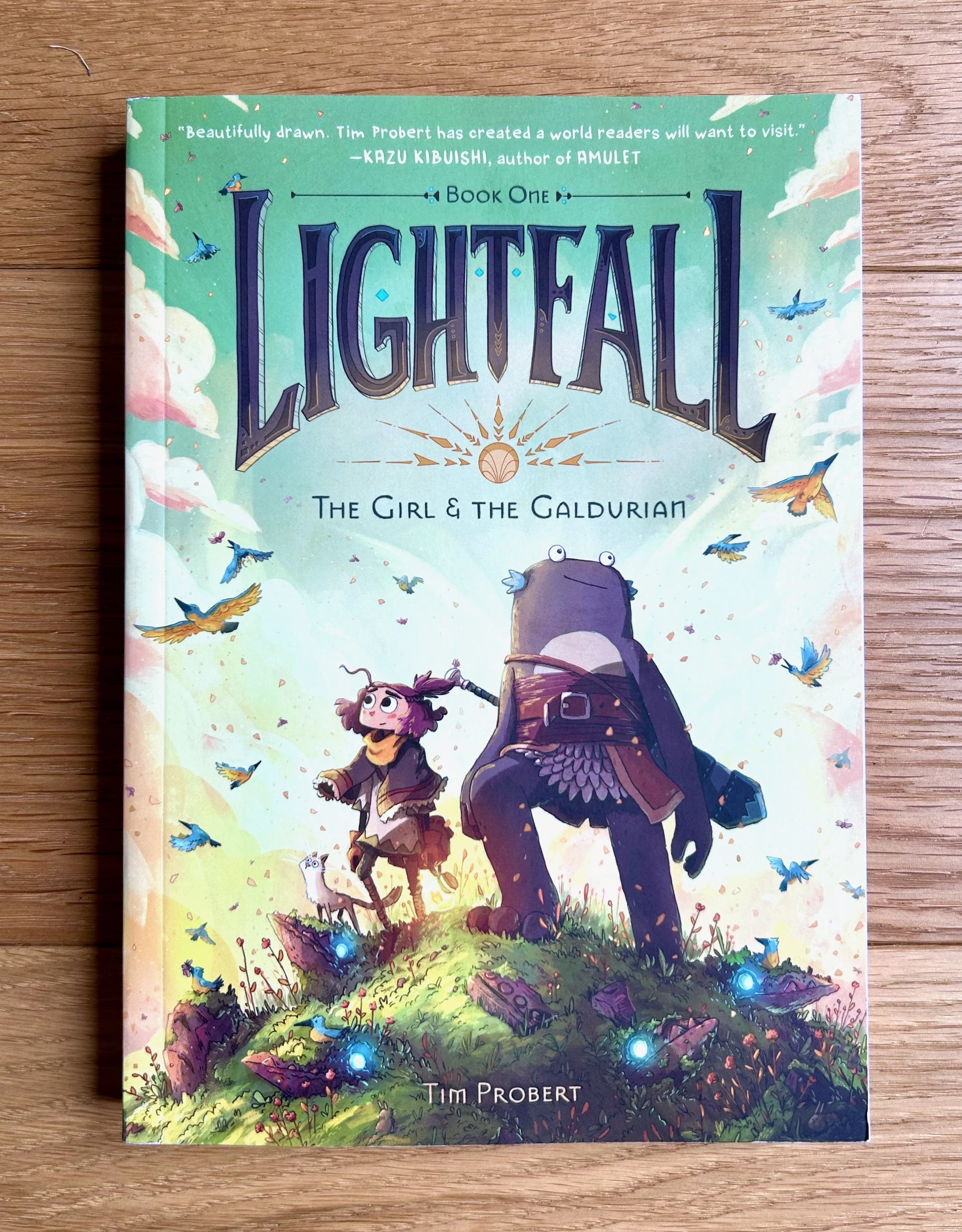 This is Book One in a series. It is a beautifully illustrated fantasty story about a girl named Bea with a mysterious lantern who suddenly has to go on a search to find her grandfather, the Pig Wizard. Bea suffers terribly with anxiety and wrestles to be brave and take on risk. Early in her search, she happens upon a Galdurian creature and they find themselves surprising friends and companions on the perilous journey. They encounter all kinds of strange creatures, misadventure, and seem to be unaware that a major problem has arisen in the world that is going to destroy everything.