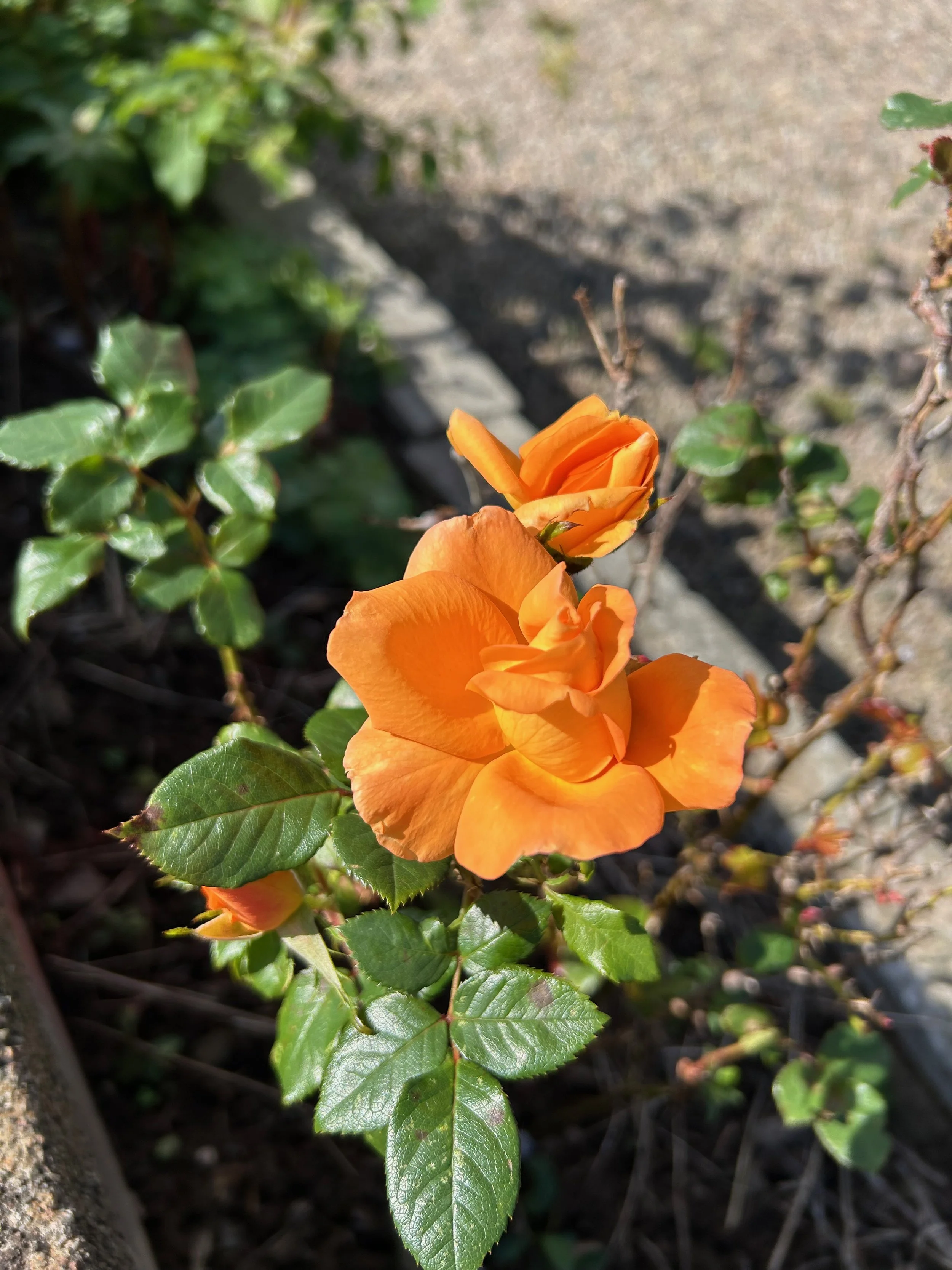 Fresh bloom of roses. I still know very little about gardening, so I was delightedly surprised to see new blooms in our front flower bed. Happy Autumn I guess!