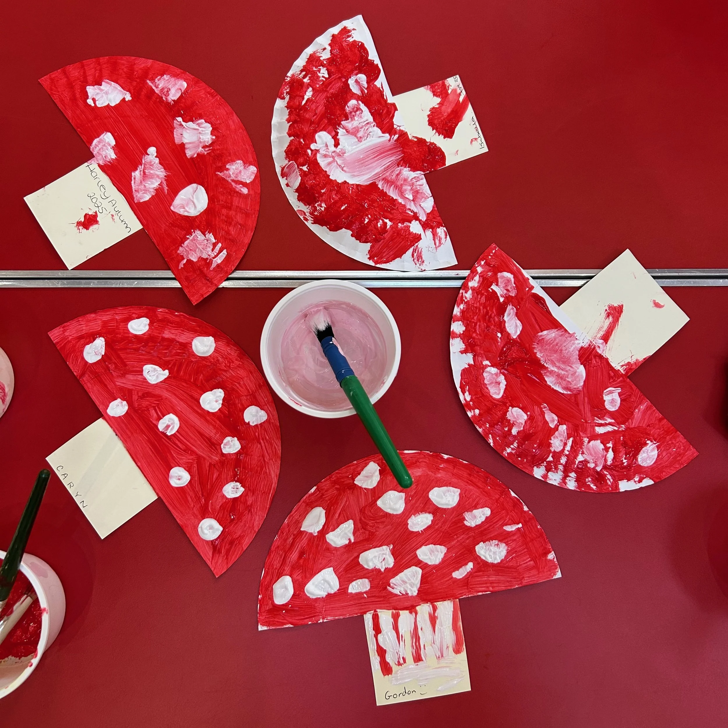 Yesterday at our toddler group we made mushrooms! So cute and so fun.