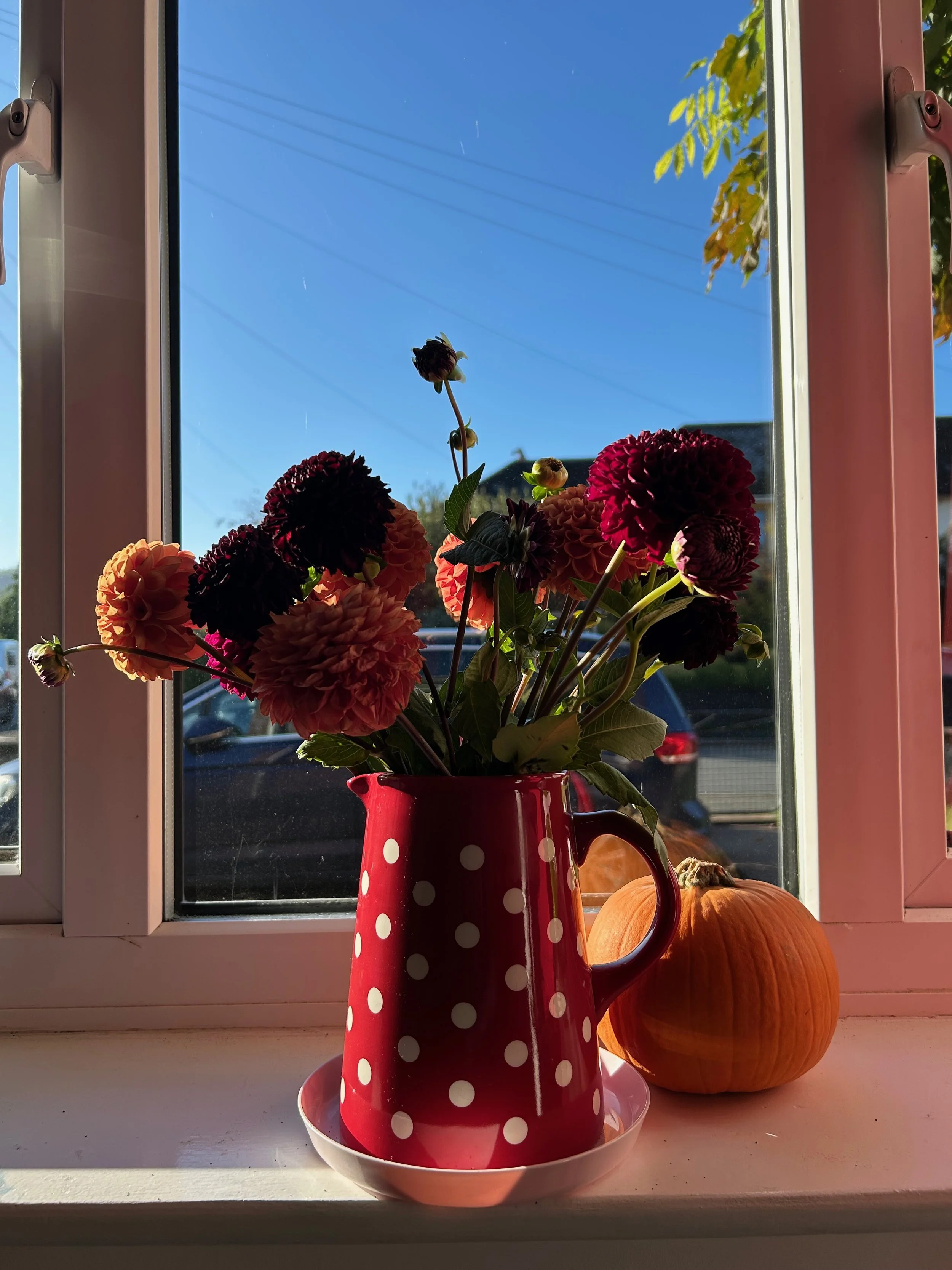 My market flowers for my birthday weekend. Joe has the best autumn flowers. Garden dahlias.