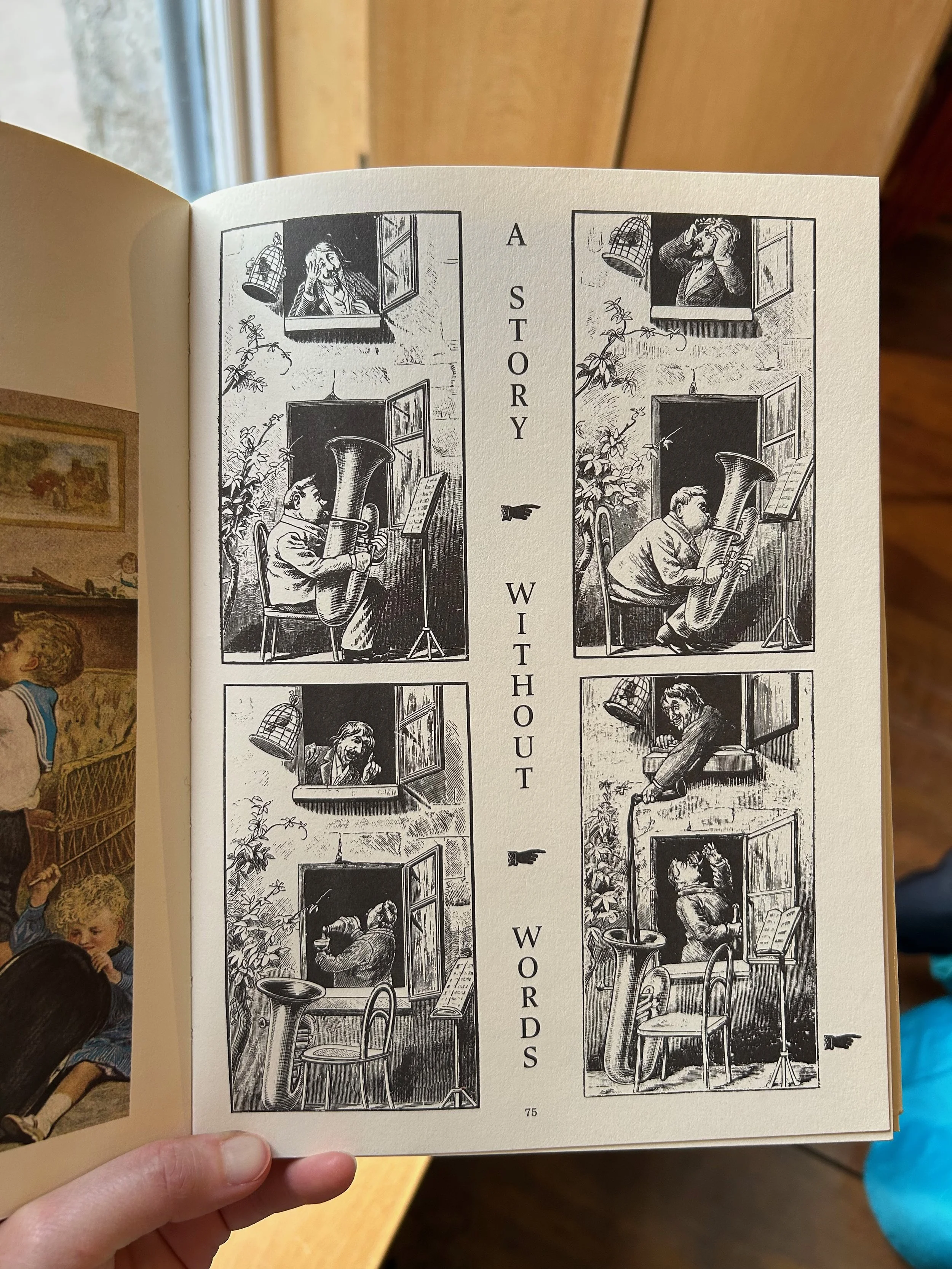 A Story Without Words. Found this 4-panel illustration in a book at Print Club called Bygone Days.