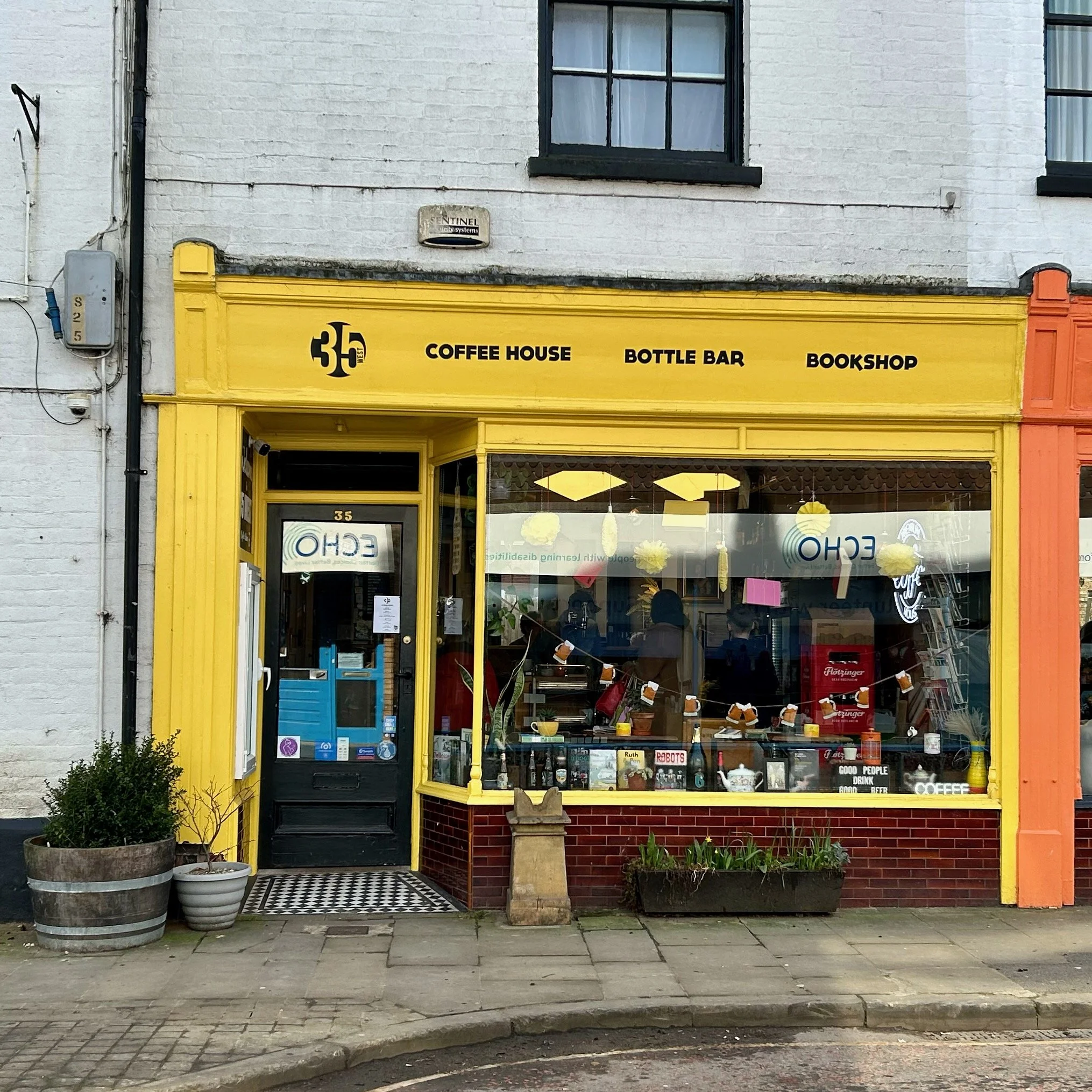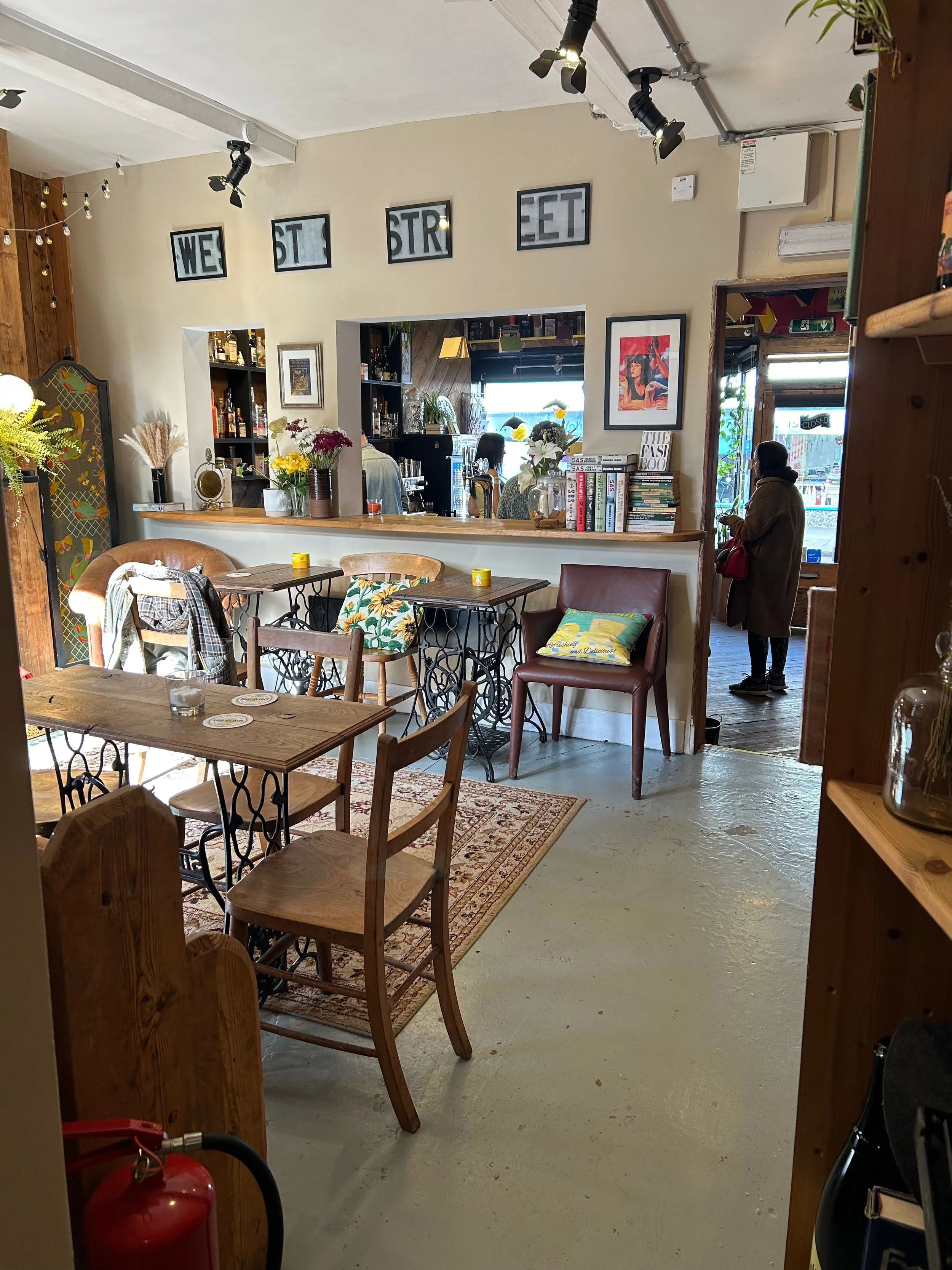 This coffee shop bookshop in Leominster. My usual Saturday morning spot in Weobley was inexplicably closed this week, so I wandered over to Leominster for the first time to see what I could find. FIrst coffee shop had a poor inspiration environment, but it had a charity shop and bookshop attached, so I perused those first. Then I was happy to find this great spot.