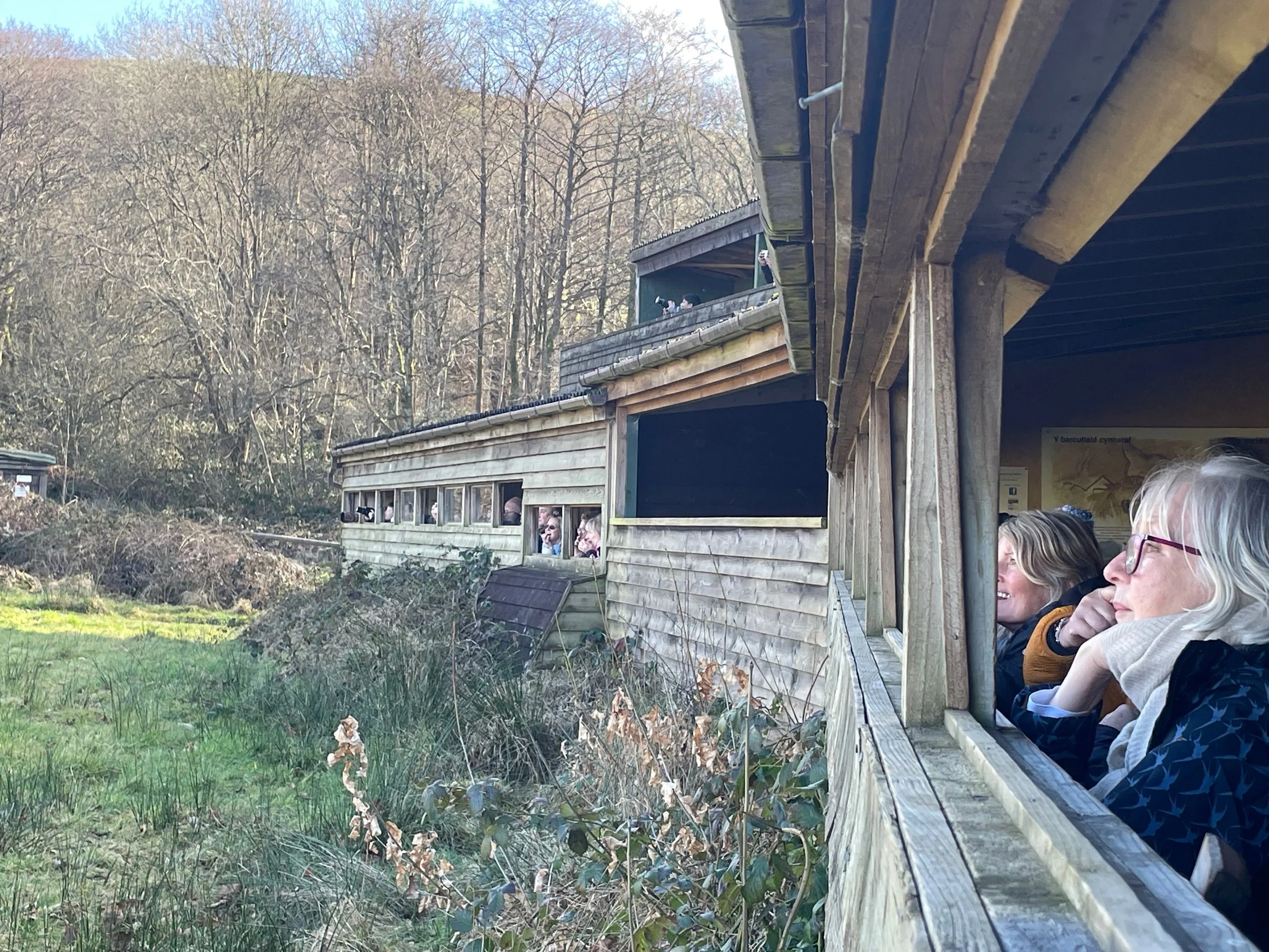 Next we went to Gigrin Farm to see the most epic feeding of wild Red Kites. We arrived just a little before our time slot and walked out to the hides where we could wait to see the feeding. Red Kites are the national bird of Wales and appear on many logos. We often see one or two swooping overhead, but this event was pretty epic.